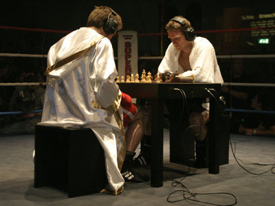 brawn. Competitors play a round of chess and then box the living crap out of